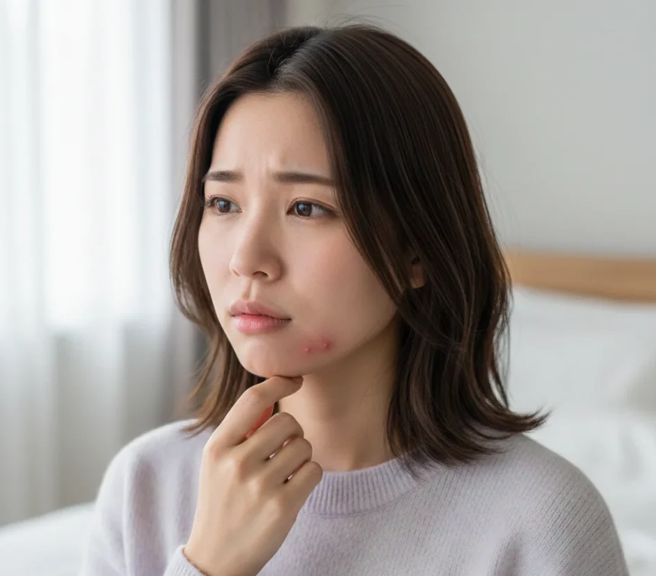 四つ目は、ニキビに痛みや強いかゆみを伴う場合です。こうした症状がある場合は、通常のニキビとは異なる皮膚疾患が隠れている可能性もあるため、鑑別診断が必要です。